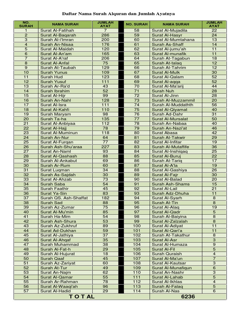 Daftar Nama Surah Alquran Dan Jumlah Ayatnya Pdf